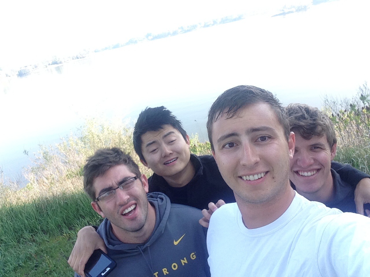 We finally arrived in Lake Mitchell at 2:30 AM with plans to wake up at 7:45. That plan came true. As rough as the morning may have been for the night owls out there, feel grateful that yours was nothing like mine. When my phone vibrated at 7:45, I didn’t realize we had to be on the road at 8:00 sharp, I didn’t understand that it would be 36 degrees outside, and I didn’t comprehend just how viciously I would need a shower. With swift grace, I ran barefoot in the cold to the campground showers. For those who don’t know about campground showers: let me illuminate you. It is so incredibly generous to call these things “showers”. “Ice Burst” would be more fitting I think. So the way this Ice Burst worked was that every 3 seconds I had to fully push down a nearby button that would send out a pulse of icy water, probably clocking in around 45 degrees. The water was seriously so cold to a point that as my body trembled and shivered, it was difficult to keep the shampoo contained in my hand and also periodically press the button with sufficient speed. After a 45-second shower and 15 button-pushes later, I sped away and recovered to the point where we managed to take some real classy pictures of us at Lake Mitchell: